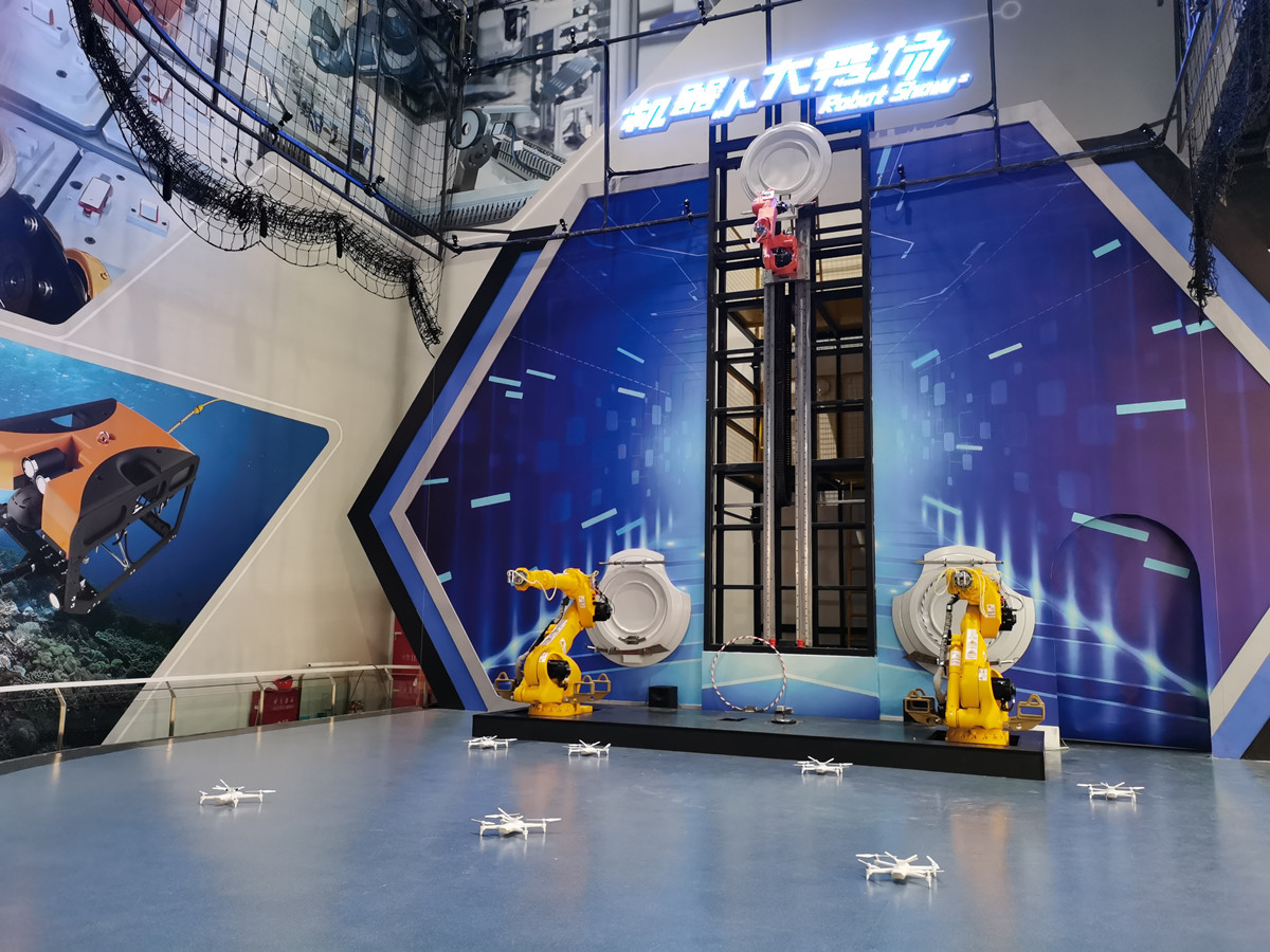 中國(guó)科技館“智能”常設(shè)展廳攜多款機(jī)器人于2021年12月30日精彩亮相,既為觀眾獻(xiàn)上一份新年賀禮,也是迎接和展示人機(jī)共融的新時(shí)代。中航恒拓?zé)o人機(jī)群與多臺(tái)機(jī)器臂大秀場(chǎng)項(xiàng)目順利上線。