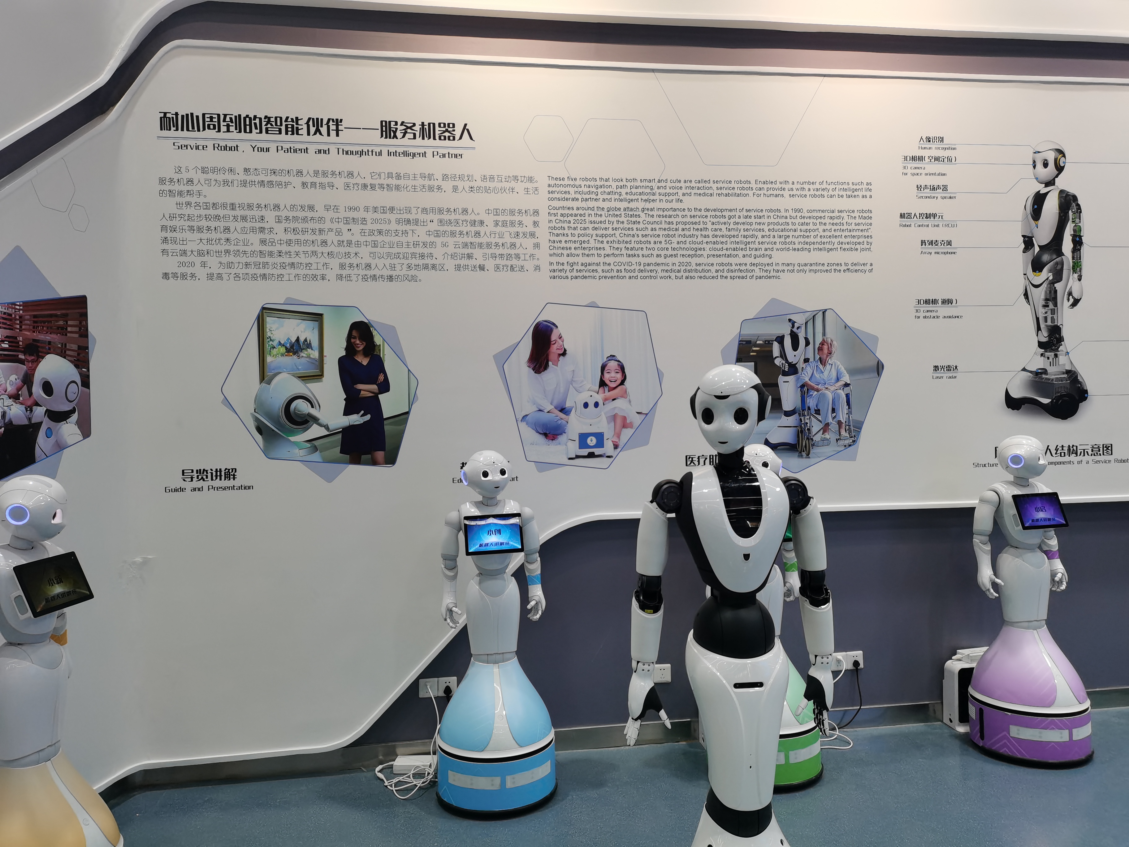 展覽充分順應(yīng)人工智能發(fā)展浪潮,積極響應(yīng)科教興國、創(chuàng)新驅(qū)動發(fā)展的國家戰(zhàn)略,以“走近人機共融”為主題,設(shè)置“嗨!機器人”、“身手不凡”、“機智過人”、“智能生活”、“機器人大秀場”5個展區(qū),以及“追蹤前沿”新技術(shù)短期展區(qū)。32件精彩酷炫的互動展品,緊扣機器人與人工智能技術(shù)獨立又融合的特點,以機器人為主要載體,將圖像識別、圖像處理、圖像理解、語音識別、語言處理、AI創(chuàng)作等人工智能技術(shù)融入到展示功能中,結(jié)合機電、多媒體、虛擬現(xiàn)實、增強現(xiàn)實、體感互動等展示技術(shù),營造融合科技、藝術(shù)、文化之美的展示形式,呈現(xiàn)出科技感、未來感十足的智能化機器人世界。讓觀眾更好地了解機器人與人工智能技術(shù)迅猛發(fā)展,為人類生產(chǎn)生活帶來的便捷與變革,迎接人機共融的新時代。