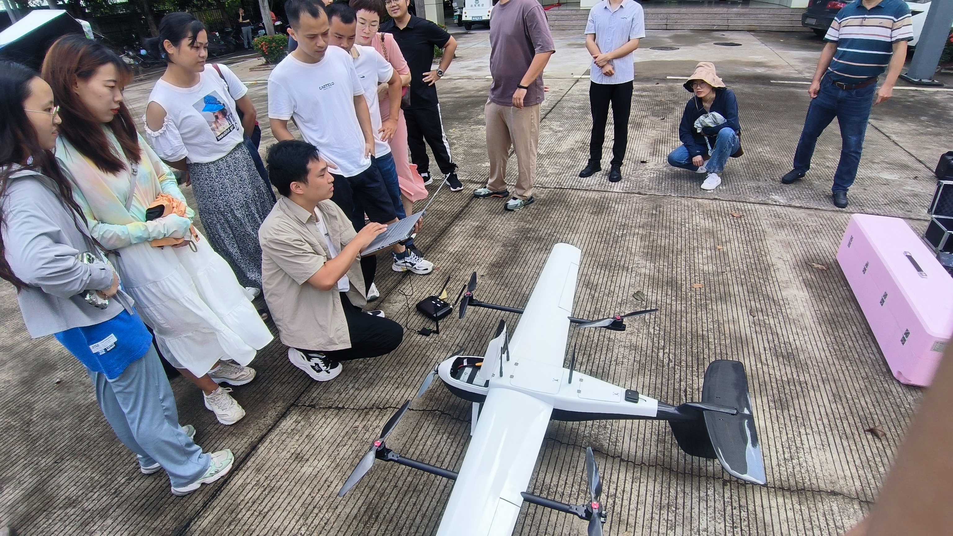 工程師在室外展示垂直起降無(wú)人機(jī)使用操作